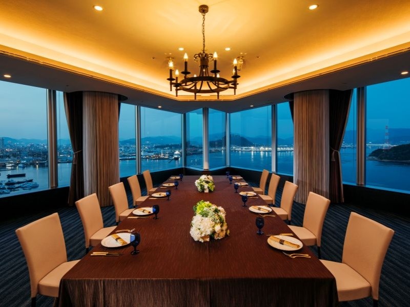 広島市街地の夜景を見渡すホテル上層階でアフターパーティーが可能です