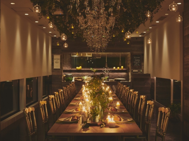 ナチュラルな木と緑に囲まれた「シェフズ・ダイニング」は、プライベート感あふれる少人数でのご利用に最適な会場です。6名様から40名様まで、個室感覚でゆったりとお過ごしいただけます。会場の魅力は、何といってもオープンキッチン。シェフが目の前で腕を振るい、出来立て熱々のコース料理やビュッフェ料理を五感でお楽しみいただけます。音響設備やプロジェクターも完備しており、お客様の特別な瞬間を彩る演出も自由自在。温もりと美食が織りなす空間で、ゲストとの忘れられないひとときをお過ごしください。