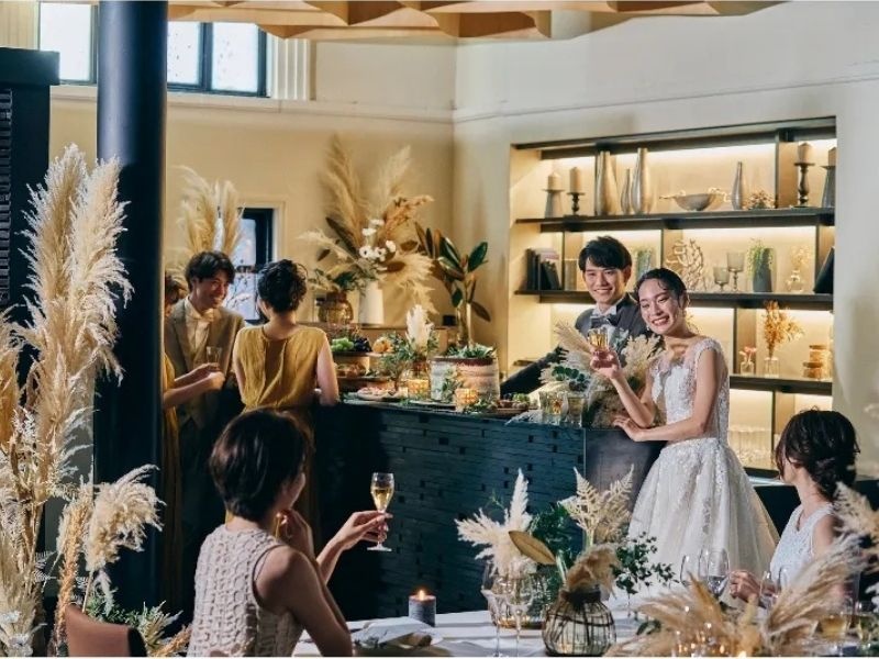 一棟丸ごと貸切にできるから、ふたりとゲストだけで過ごす気取らない結婚式が叶う。百種類の料理メニューからシェフと一緒に創る数万通りのオリジナルコースが魅力。ふたりの夢を予算内で叶える自由な挙式&パーティを。