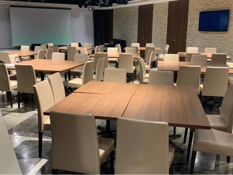 品川駅から徒歩2分の好立地にある「J-SQUARE」は、企業イベントから各種パーティーまで対応可能な多機能貸切スペースです。特筆すべきは、大型メインスクリーンに加え、両サイドに6台のサブモニターを備えた充実の映像設備。セミナーのスライド上映や感動的なムービー演出、表彰イベントなどを鮮やかに彩ります。照明・音響機器、カラオケ、マイク、プロジェクター、PC接続、DVDプレイヤー、ステージといった豊富な設備が完備されており、バンド演奏の相談も可能です。さらに、控え室やクロークも用意され、写真・カメラマン、司会者、装花、ケーキ、BGMの手配など、イベント運営に必要なあらゆるサービスを一括でサポート。立食で最大170名様、着席で100名様まで収容可能で、広々とした空間でゲストの心に残る特別な時間をお届けします。