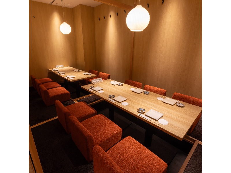 2名様から最大30名様までご利用可能な完全個室をご用意。大人数での宴会もサポート致します。宴会用個室は広々としつつも落ち着いた空間。大人数様でもゆったりと個室でご宴席をお楽しみいただけますので、2次会・お食事会など幅広くご利用ください。