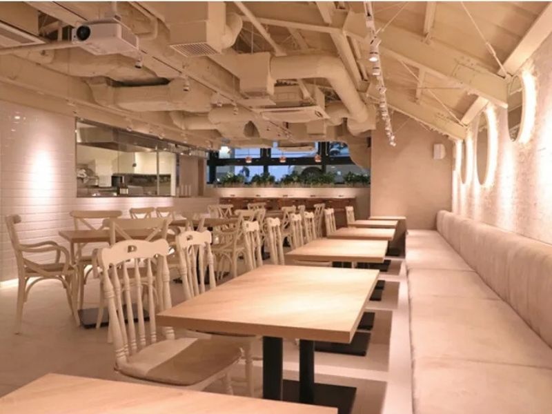 【話題のスポット日比谷OKUROJI】シンプル&洗練された空間で食の多様性を楽しむ。真っ白な壁とイス、ナチュラルウッドのテーブルだけで作られたシンプルな空間。オーガニック食材やスーパーフードを使用し、世界の民族料理を美味しく、ヘルシーにアレンジしたエスニック多国籍のカフェ&ダイニングバー。