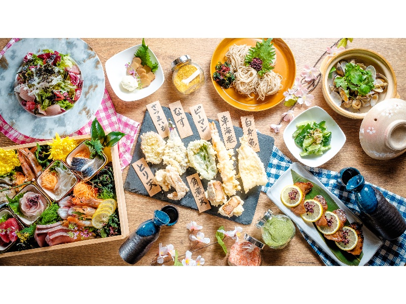 天ぷら4種、おでん3種、釜揚げしらすと煮穴子のちらし寿司など! 3H飲み放題+料理12品 税込5,500円