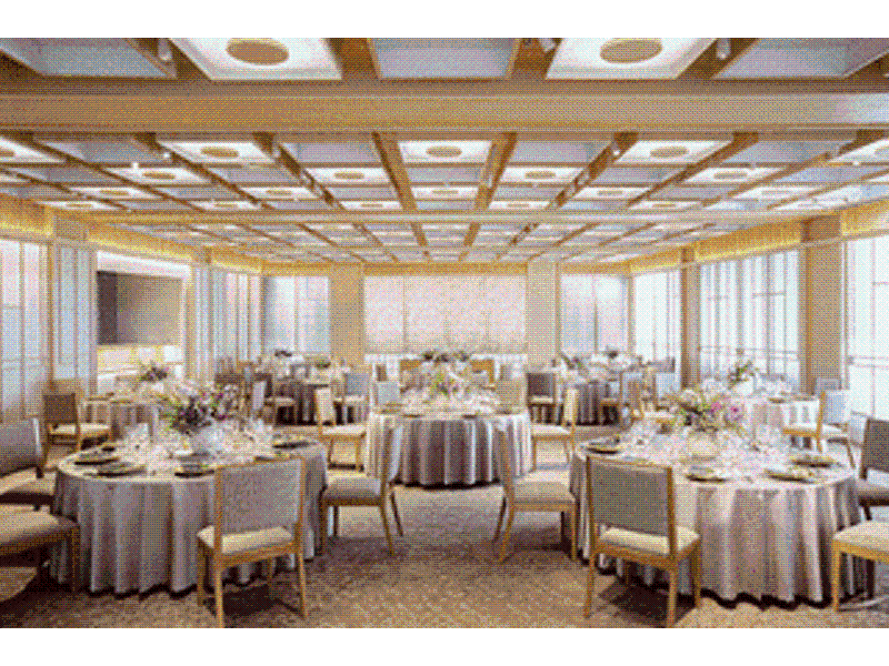 「MEGUMI」は、自然光をふんだんに取り込む、明るく開放的なバンケットです。壁の一部に伝統的な組子を取り入れた、洗練された和モダン空間が特徴。立食パーティーから企業のイベント、大人数の会合まで幅広く対応可能です。会場に備え付けられたオープンキッチンでは、料理人が目の前で腕をふるい、ライブ感あふれる料理の演出がゲストの皆様を魅了します。特別な瞬間を華やかに彩り、記憶に残る感動を提供できる、最適な会場です。