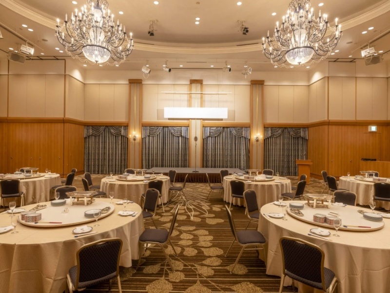 いわきワシントンホテルの3階に位置する大宴会場『アゼリア』は、883平米もの広さと、開放感あふれる6.4mの天井高を誇る、いわき市で最大級の規模を誇る会場です。この広大な空間は、全体利用の「A+B+C」をはじめ、「アゼリアA」「アゼリアB」「アゼリアC」といった柔軟な分割利用も可能。大規模な国際会議、展示会、セミナー、盛大な祝宴など、あらゆるイベントニーズにきめ細やかに対応いたします。壮大なスケールと自由な設営で、参加者の記憶に残る特別なひとときを演出する理想的な会場です。
