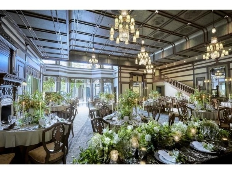 伝統的な日本庭園と優雅な洋館が見事に融合し、西洋と日本の文化が織りなす唯一無二の空間を提供します。天井が高く開放感あふれる会場には自然光が心地よく差し込み、映像音響設備も充実。専用の日本庭園ではデザートビュッフェやガーデン演出、屋内では華やかな階段演出など、多彩な演出でゲストを魅了します。ラグジュアリーな雰囲気の中で、特別な一日を心ゆくまでお楽しみいただけます。