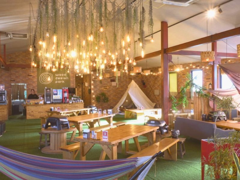 野並駅徒歩10分の「ウッドデザインパーク野並店」は、人工芝やテントが彩るお洒落な全天候型グランピング施設です。最大100名まで収容可能で、結婚式二次会や1.5次会に最適。冷暖房完備の快適な空間で、音響設備やサプライズ用の特製プレートも充実。非日常感溢れる一軒家貸切パーティーを叶えます。